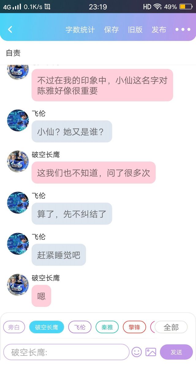 星珧(作者)有些人物也没有对话,因为我在写的时候没有注意到,在小说这本软件上才注意到的