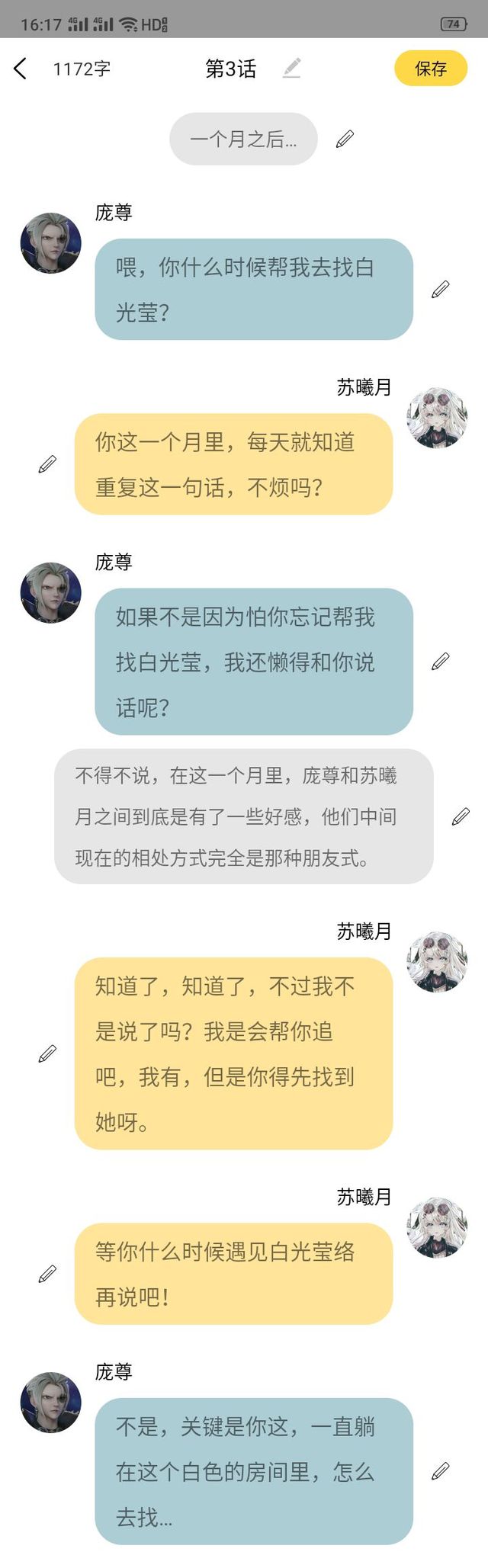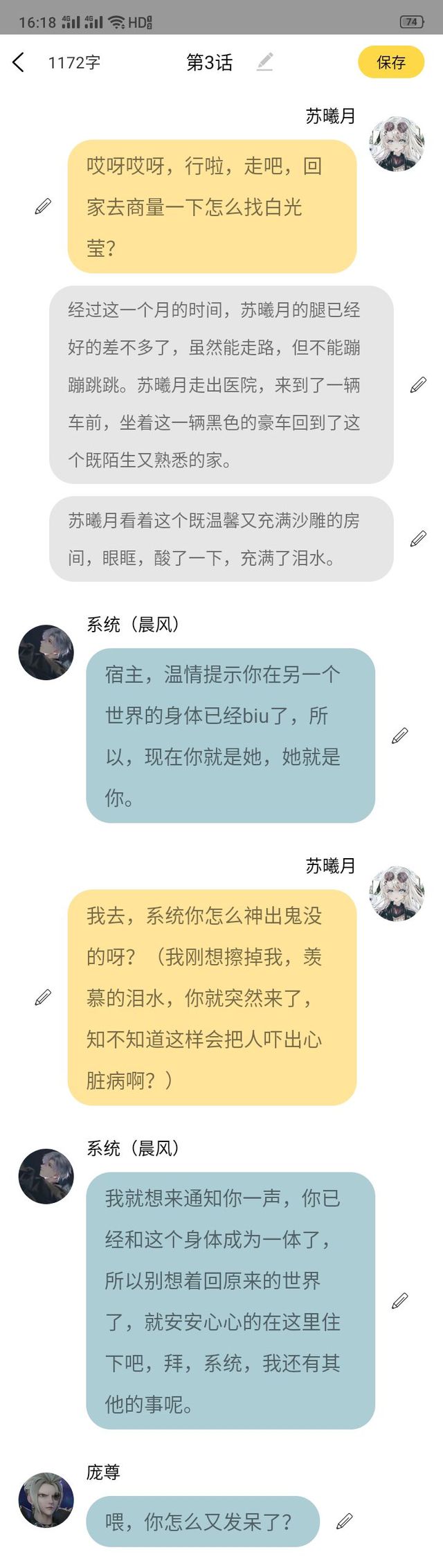苏曦月没什么。(我不属于这个世界,帮他找到白光莹之后就要走了,有什么好羡慕的,我本来就是因为要磕CP才来的,可为什么舍不得…)