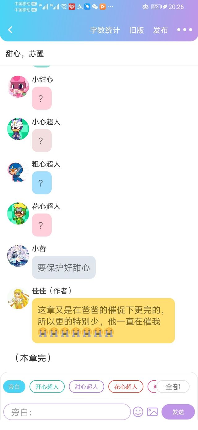 佳佳(作者)我更完啦,很少的,两天没更,十分对不起,明天见啦!