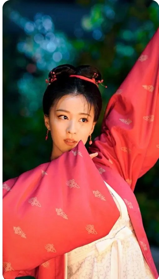 随着舞步的移动,女子小巧的舞鞋出现在众人眼前,一袭坠满珍珠的玫红衣袖随着舞姿轻转,衣袖飘飘,红衣似火,一张娇俏明媚的容颜落入众人眼中,明明是一张明艳的脸,眉眼间却带着一丝若有若无的高傲,矛盾复杂,神秘又高冷,让人心生敬畏,不敢亵渎!