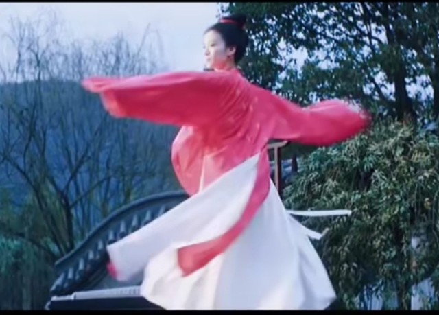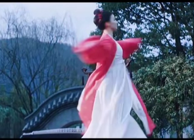 女子一举一动尽显风情,像误入人间的仙子,仿佛转瞬即逝。