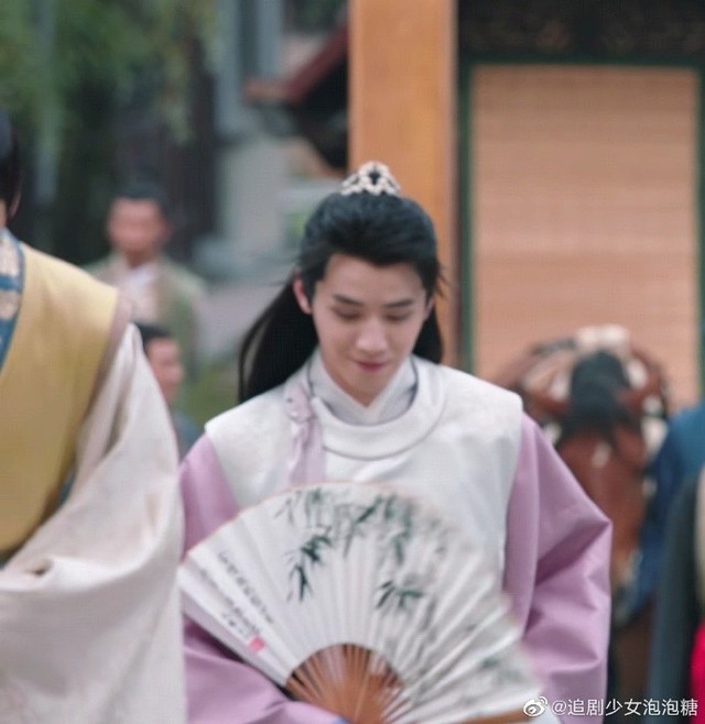 兰烟笑了笑二人继续走着,远方走来一个人影,紫衣白袍手拿折扇,迎风而来,兰烟笑着看向那人。