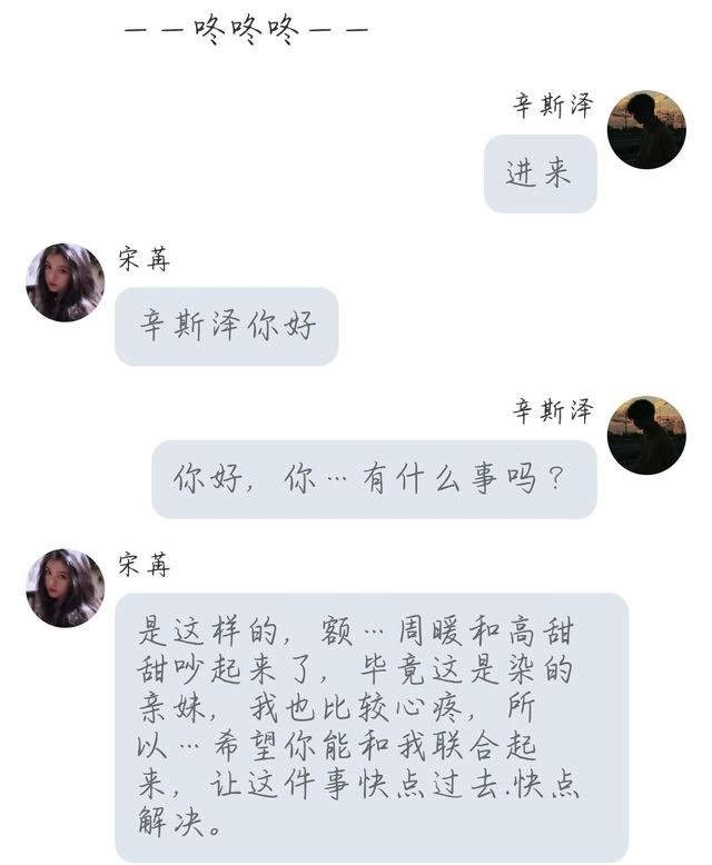 周染人家是来认错的,我看态度比较诚恳,我相信她们现在是好朋友。对了,不说我了,聊聊你呗
