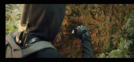 我们穿过了树洞,往里走着,每隔一段路,边上都立有人面鸟雕像,小哥伸手摸向两边的雕像,似乎发现了什么。