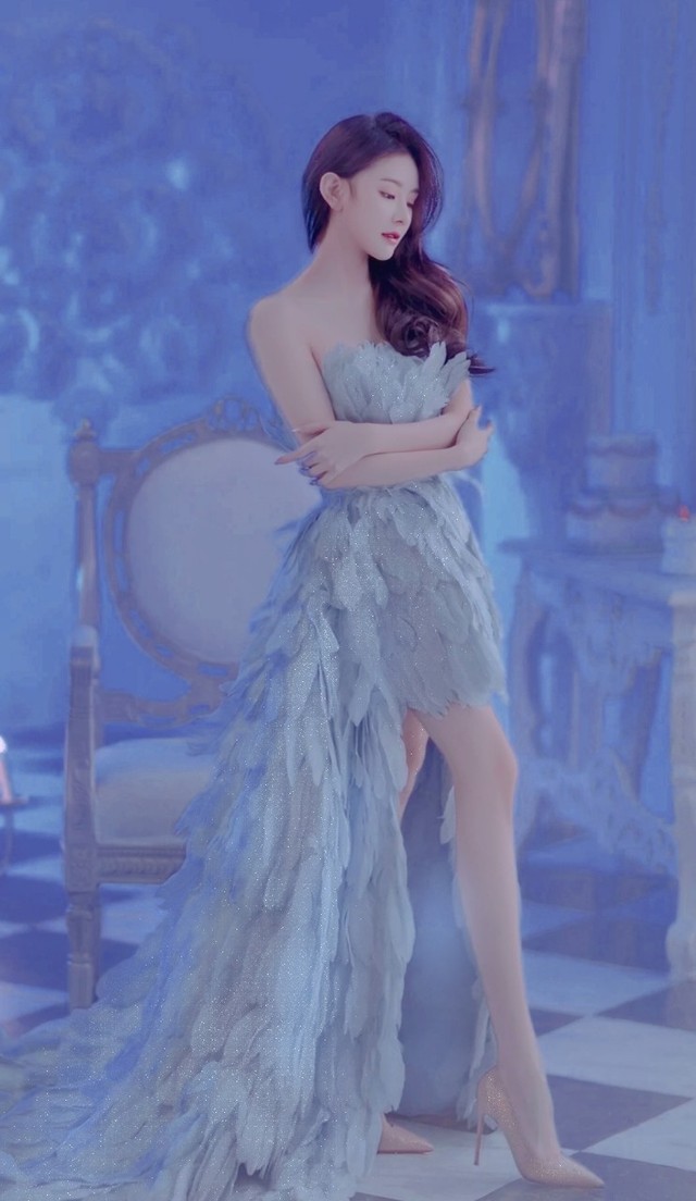 苏子蓉擦了擦脸上的眼泪,起身回到卧室里,取掉自己头上的假发,乌黑的秀发散落在背上,从衣橱里选了一件水蓝色的连衣裙。裙子采用了亮闪闪的面料,精致的V领设计露出苏子蓉美丽的脖颈和性感的锁骨,袖子处也采取了开叉的设计,将她白皙的手臂展现出来,浑身都充满了优雅魅惑。最吸睛的是裙子裙摆处的开叉设计,将她纤细又白皙的双腿展现出来,脚上一双银花的高跟鞋,与水蓝色搭配在一起极具高级的质感,非常有气质!画好精致的妆容,拿上米白色包包离开绫兰苑……