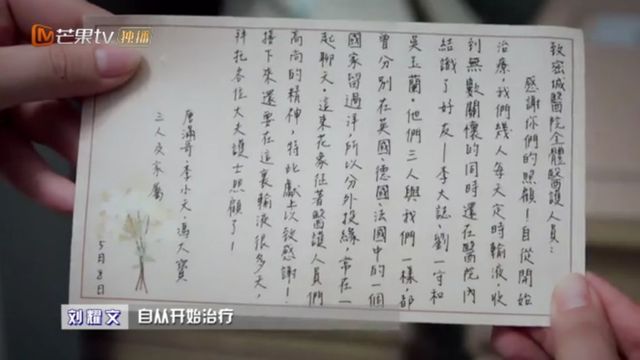 只见鲜花上面有一张纸,刘耀文将纸拿出来