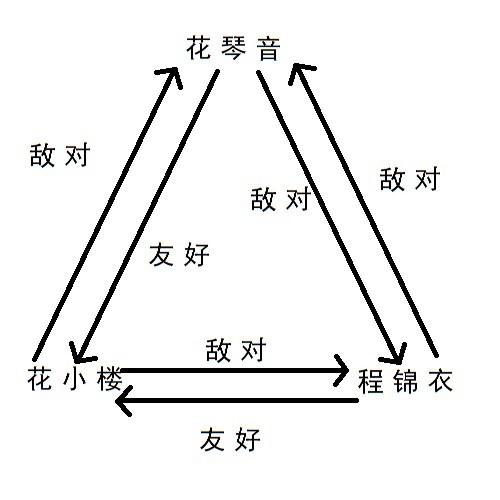 花小楼先因为自己得不到程锦衣,琴音却要嫁给他对琴音产生敌意,再因为程锦衣背叛了她,然后又被程父的三言两语不再追她产生敌意