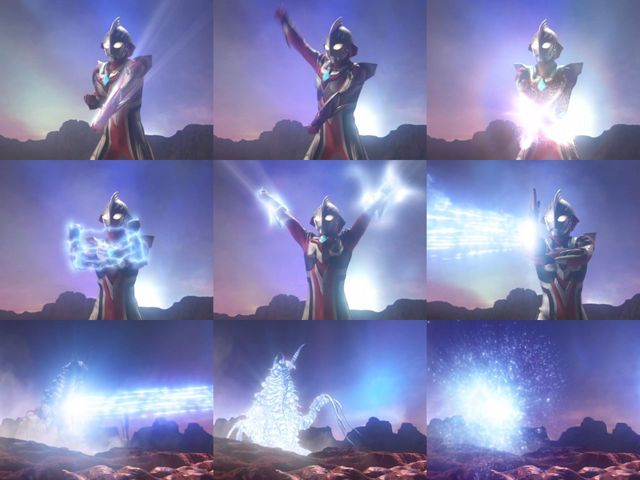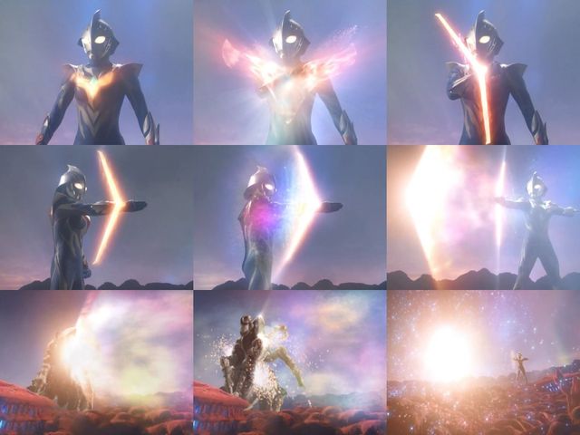 艾塔尔迦(过去)【先被弓箭光线·风暴击穿,最后,又被最终究极赛罗击中】啊【发生爆炸】