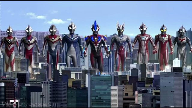 所有的七位奥特战士飞出时空城,与此同时,赛罗也赶来了