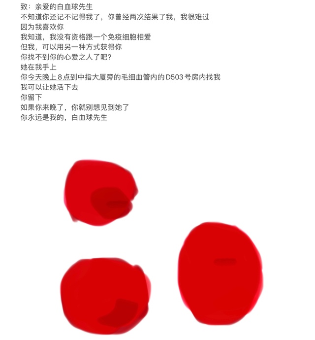 甚至还以为是那位“他身边的红血球”写的情书……