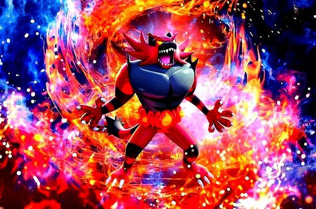 炎热喵全身包裹火焰蓄力向炽焰咆哮虎冲去,而炎热喵想到眼前这个自己的进化体出场时还用国际通用手势鄙视且瞧不起它,于是炎热喵决定……………