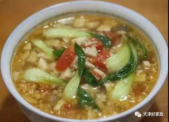 水倾颜肉末蕃茄杏鲍菇汤