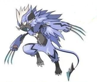 一只双手带着利爪,形态酷似捷拉奥拉的宝可梦呈现在众人眼中,原本的黄色电流也变成身体上的蓝紫色