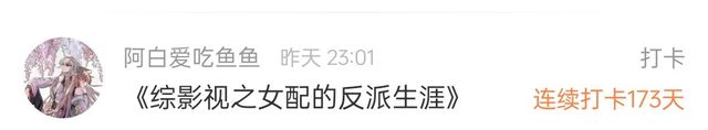 作者谢谢“阿白爱吃鱼鱼”小仙女为我连续打卡了173天!爱你们哦!!