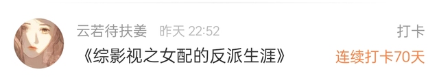 作者谢谢“云若待扶姜”小仙女为我连续打卡了70天!爱你们哦!!