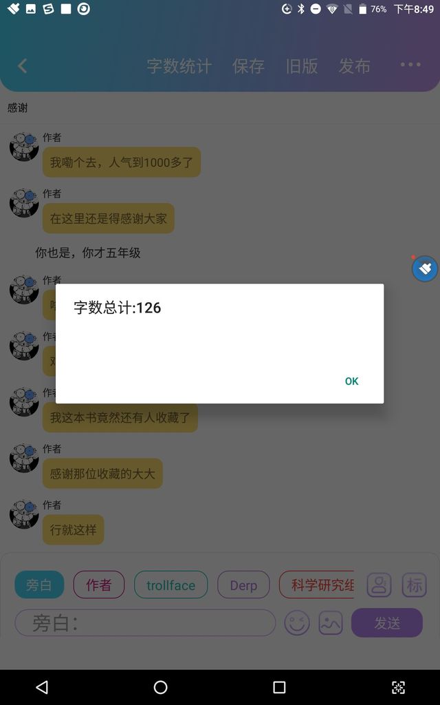 癫.作者我嘞个去,人气到1000多了