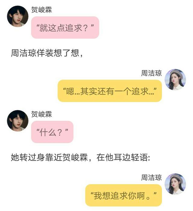 两人对上视线,周洁琼俏皮的对他眨了眨眼,贺峻霖看到她的动作,可能是被她可爱到了,他无奈一笑。
