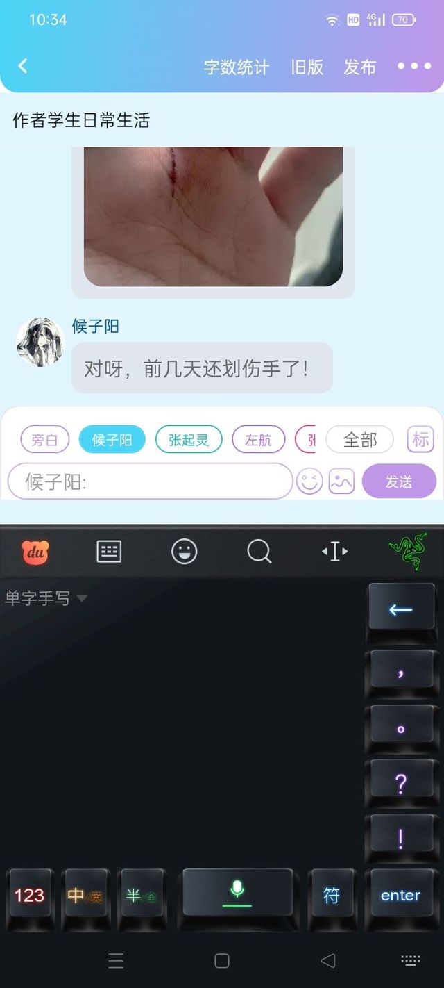 候子阳对呀,前几天还划伤手了!