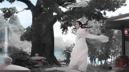 *白色身影在树下翩然舞动,折扇翻飞如同流星,千雪心不由得屏息凝神,感叹其武功卓绝*