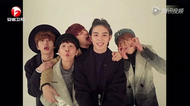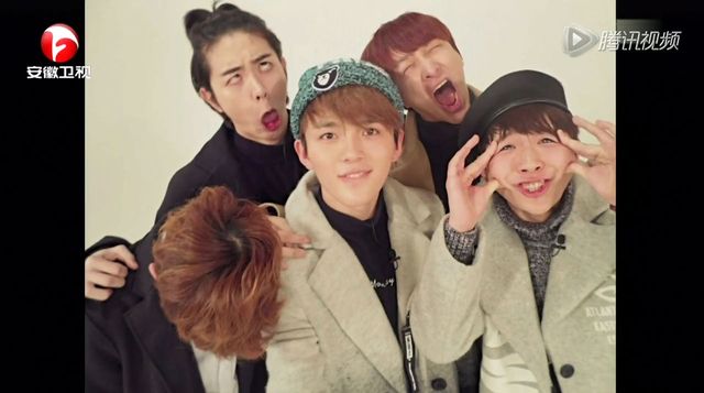 只见主持人和男生团体们说