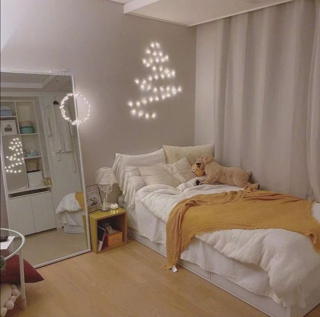 她环顾了一下四周,灯光有些昏暗却很柔和,床上还摆放着玩偶,房间虽然小但五脏俱全,在床头桌侧面还放着一面较大的镜子,应该是个十分爱漂亮的女生居住着的。