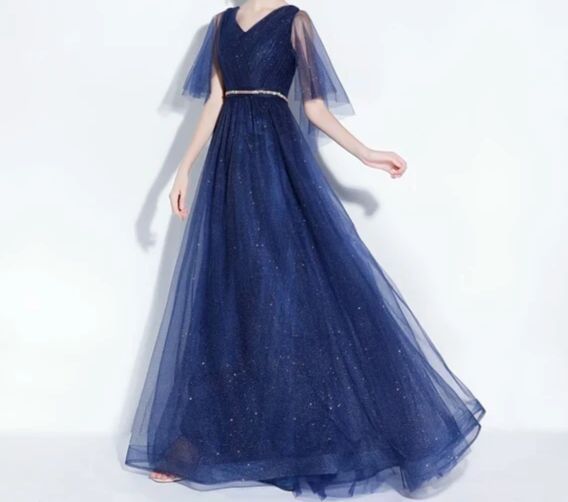 又试了几件衣服,谈明最终选择了一件蓝色的礼服,上面还配着亮亮的细闪。