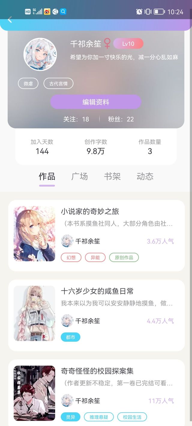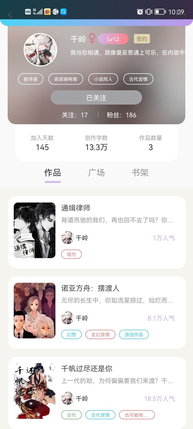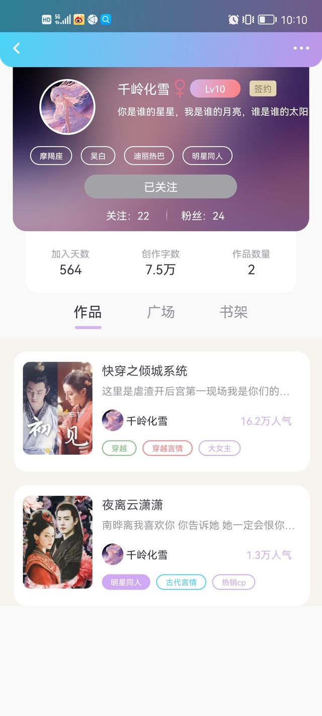 喜欢看古风的小可爱,推荐你们去我小号看《莲香袅袅》,已经九万多字了,而且我自认为那边的古风写的其实很不错来着……