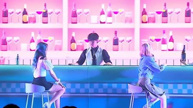 在沙滩前的一个小酒吧内,鹿允珂和叶皖坐在长腿椅子上等待着姐妹们的来临