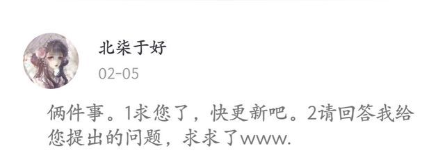 曦芸(作者)我想知道你们为什么这么爱催更,我起码也是一天更一两章吧
