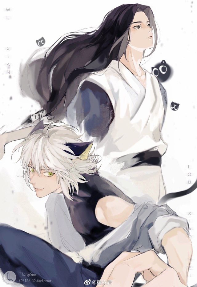 白发黑耳的罗小黑身旁有位白净清纯的女孩子,好奇的探出个脑袋询问道。