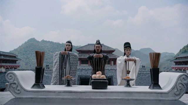 蓝曦臣,聂明玦还有孟瑶,现在该叫金光瑶了,他们三个结成了异姓兄弟。