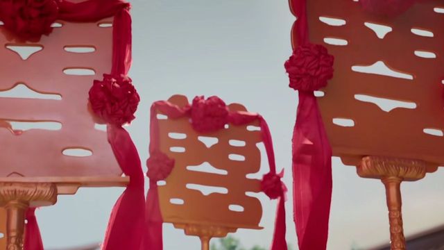 秦淮在媒婆的搀扶下登上轿撵,她不知是察觉到什么,突然摘下了盖头,掀开帘子向外看去。