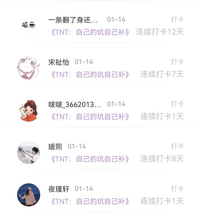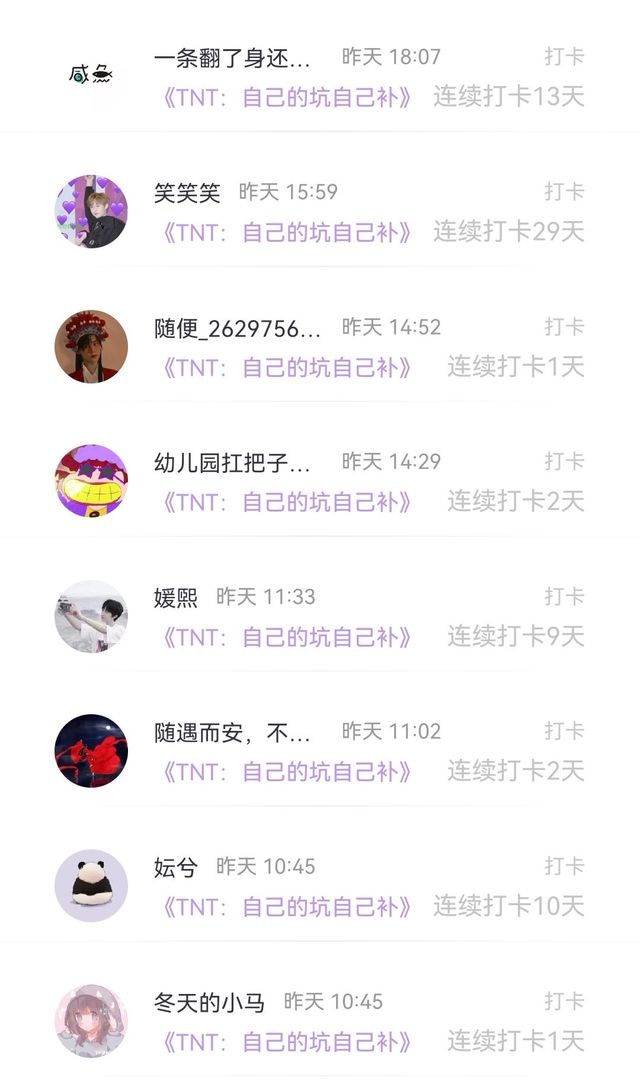 写手感谢♠️静(抱歉,后面个字符是真的打不出来了),原创作家梦玖的花花呀!感谢吃到苦就是得到甜,卫云淇,宋祉怡,一条翻了身还是咸鱼的闲鱼,笑笑笑,随便_2629756…,幼儿园扛把子…,媛熙,随遇而安,不(随波逐流?),妘兮,冬天的小马,啵啵_3662013…,夜瑾轩的打卡呀!看到了好几个熟悉的友友!有时候更新不定,所以可能大家头天的打卡可能会被我放到第二天