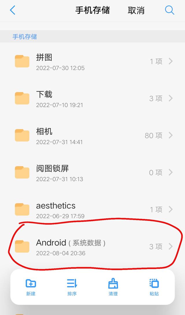 找到Android(系统数据)打开