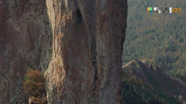 在万丈高的峭壁上有个男人正在攀爬,后面是万丈悬崖,但他丝毫不慌,反而有恃无恐,轻松的很!