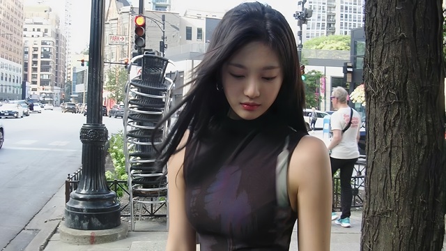 眼睛一下就聚焦在漂亮的脸蛋上,她站在街道旁,发丝被风轻轻撩动,多了一份随性与自然