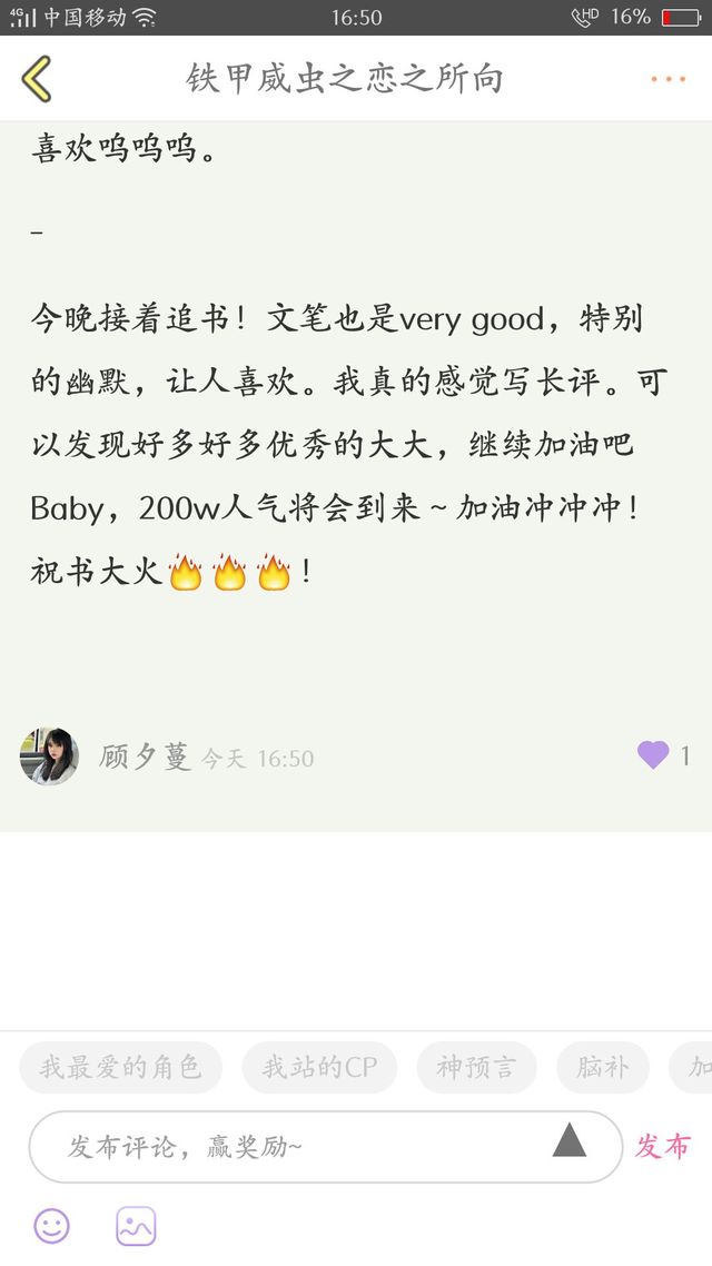 今晚接着追书!文笔也是very good,特别的幽默,让人喜欢。我真的感觉写长评。可以发现好多好多优秀的大大,继续加油吧Baby,200w人气将会到来~加油冲冲冲!祝书大火🔥🔥🔥!