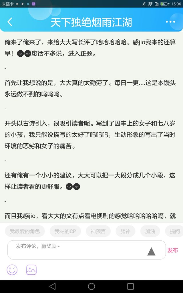 而且我感jio,看大大的文有点看电视剧的感觉哈哈哈哈哈嗝,就是感jio把人物刻画在我的眼前,文笔也是very good。描写黑袍男子也描写的很好!