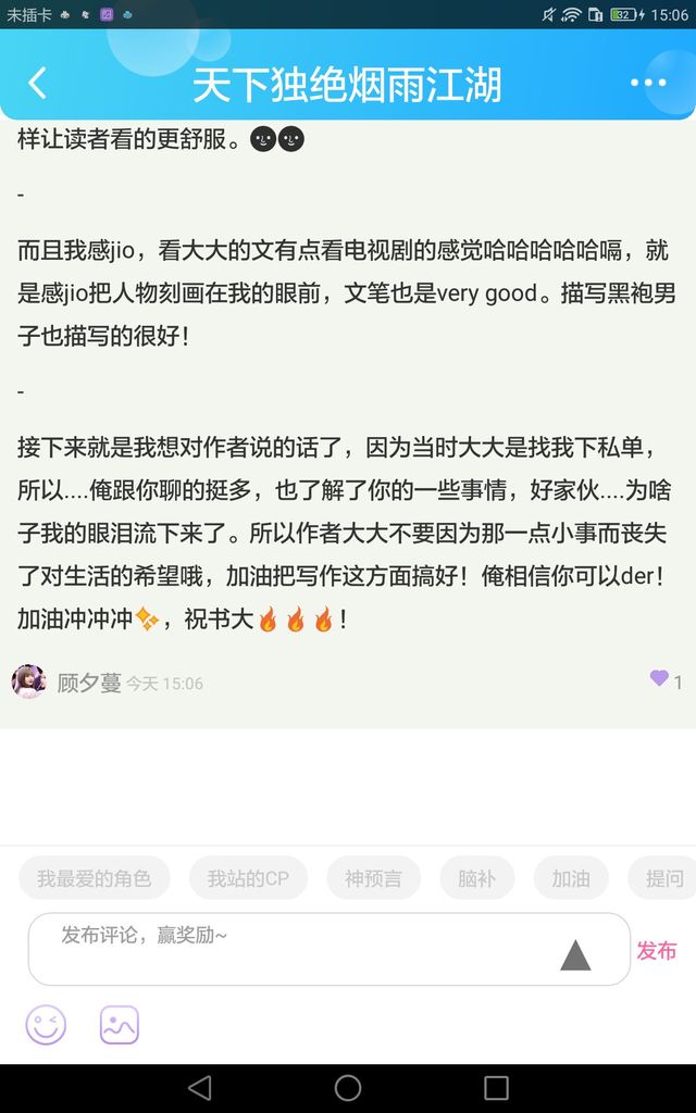 接下来就是我想对作者说的话了,因为当时大大是找我下私单,所以....俺跟你聊的挺多,也了解了你的一些事情,好家伙....为啥子我的眼泪流下来了。所以作者大大不要因为那一点小事而丧失了对生活的希望哦,加油把写作这方面搞好!俺相信你可以der!加油冲冲冲✨,祝书大🔥🔥🔥!