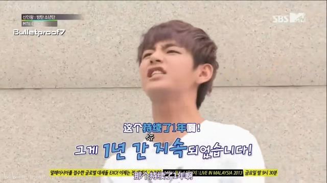 “首先是我错了。哈哈哈嗝,对不起了。”南俊没有忍住,跟着笑了起来。“但是我不太记得练习生的。但是你能生存到最后,现在有了V就正式的名字。”