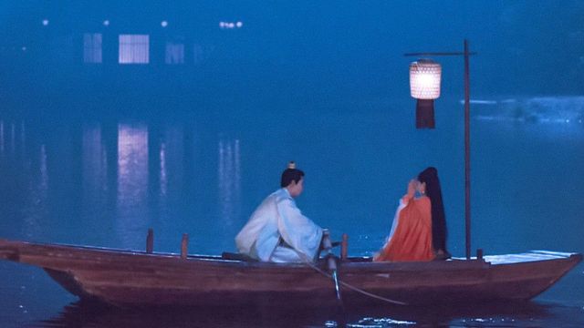 两人夜里游湖,百里弘毅划船,温愉赏景。