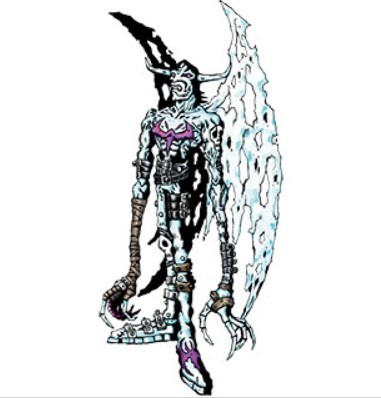 数码机(可可)冰恶魔兽:拥有一颗冰冷之心的堕天使型数码兽。据说是恶魔兽中持有特别残忍之心的进化后的形态。善于利用言辞欺骗敌人,用冰翅膀把对手包起来冰镇。