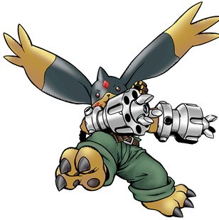 数码机(可可)加鲁哥兽的一种,擅长趁着黑暗奇袭敌人。受到体内混入的“Black Digitron”的影响,在战术上和战斗力上都比普通的加鲁哥兽都要优秀,主要擅长体术。性格非常冷静,能以精准无比的攻击消灭敌人。必杀技是乱射双臂火神炮的“加特林武装”,以及强烈的爆裂上勾拳“达达上勾拳”。