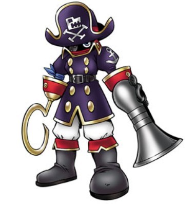 数码机(可可)铁钩兽:独眼的海盗数码兽。追寻梦幻的白色巨鲸兽在“网络之海”上冒险,是个勇于面对汹涌波涛的海男。右手成为铁钩状的钩爪,一旦挂到猎物不管怎样都不放手。必杀技是从左手的加农砲射出的“船长大炮”。