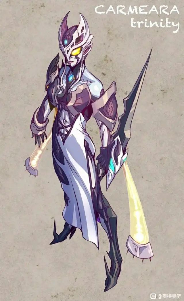 卡尔密拉(黑暗型)黑暗逐结{释放黑暗的力量融入希特拉姆的能量,并汇聚在卡尔蜜拉之刃,以自身360°无限旋转,对黑暗特利迦进行高速旋转斩击}