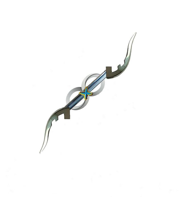 因菲尼特·永恒无限{将两个头镖进行组合的高速旋转而形成圆形屏障挡下,从屏障中拿出一把酷似安德鲁美洛斯的双重斩枪的双刃大刀}