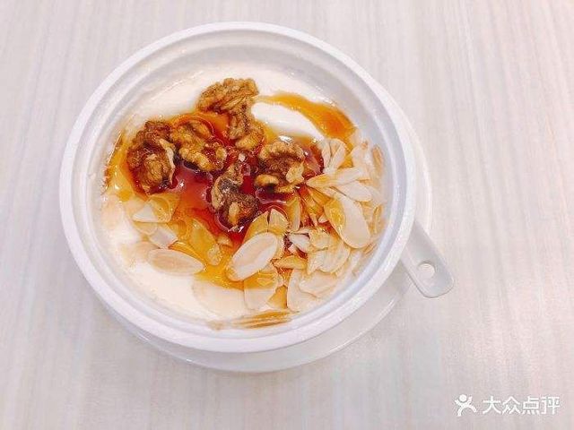 宋桉语靠在厨房的门框上,就这么一直看着丁程鑫装完一碗双皮奶又撒上杏仁,做上了很多点缀,成品不输甜品店半分。