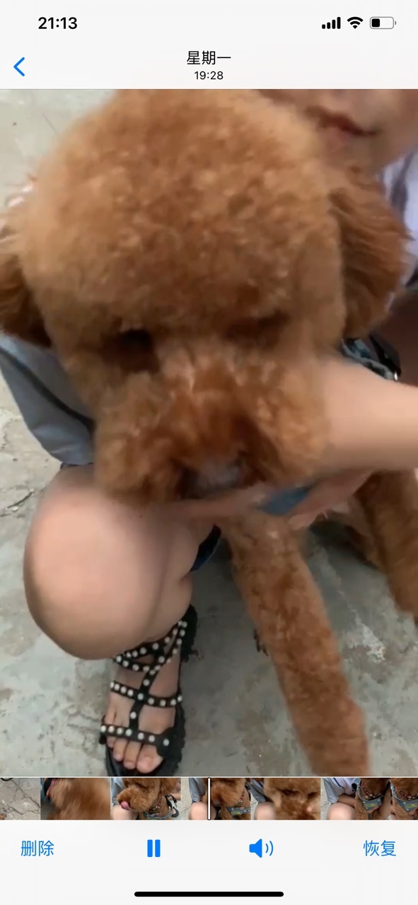 小狗是棕色的泰迪,下巴上和胸前有一佐白毛
