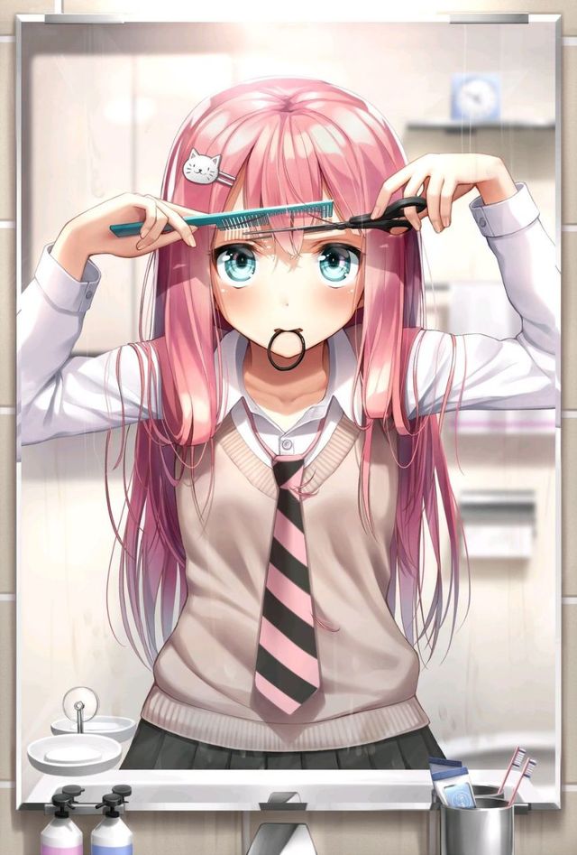 “嘘,她在剪刘海,别打扰她,剪歪了不好看了。”