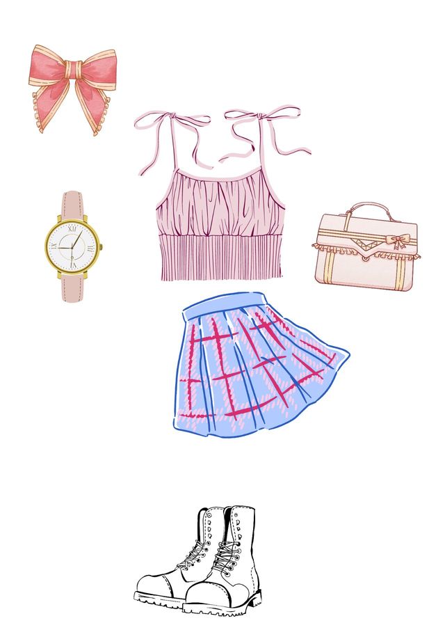 短发的可爱女生化着精致的淡妆,穿着粉色吊带和亮色的裙裤,露出一节白皙紧实的小蛮腰,脚上踩着一双马丁靴,衬得笔直修长的双腿更加晃眼。